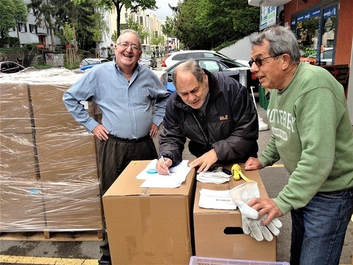 Von einem Verbandstoffunternehmen in Süddeutschland erhalten wir 10 Paletts Verbandstoff- und Inkontinenzmaterial, welches in der Ukraine kaum, oder nur zu sehr hohen Preisen, erhältlich ist. Eine Bündner Nusstorte überzeugt die Schweizer Zöllner von unseren guten Absichten und sie lassen uns die Ware, ohne weiter Fragen in die Schweiz und schliesslich in die Ukraine transportieren.